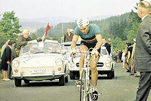 In the late 1950s Fred De Bruyne won the race three times in his first three participations, equalling the former record of Houa and Schepers. In 1957 two riders were declared winner. Germain Derijcke was first over the finish line, but he had crossed a closed level crossing. Derijcke had won by a three-minute lead and judges felt he had not gained that much time from illegally crossing the railway, thereby not disqualifying him. Officials compromised to promote second-place rider Frans Schoubben to first as well.[12] In 1959 Liège–Bastogne–Liège became part of the Super Prestige, successor of the Desgrange-Colombo competition and early precursor of the UCI World Tour, making the Ardennes Classic one of the main cycling events of the year.