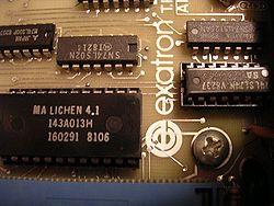 Wang's mark also shows up in and on the Exatron Stringy Floppy ROM for the TRS-80 Model I. Embedded Systems columnist Jack Crenshaw calls Wang's Manchester encoding code, achieving 14K read/write speeds, a "work of art."[12]