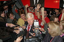 Former Liberal House Leader Don Boudria[32] served as Dion's Campaign Chair and Paul Martin's BC Lieutenant Mark Marissen was his National Campaign Director.[33] One-time Progressive Conservative leadership aspirant David Orchard also announced his support of Dion.[34] Additional high-profile supporters included then-leader of the Saskatchewan Liberal Party David Karwacki,[35] Jamie Elmhirst, the President of the British Columbia wing of the Party,[36] Adam Campbell, the President of the Alberta wing of the Party,[37] former Green Party of Canada deputy leader Tom Manley,[38] former Prime Minister Paul Martin's Chief of Staff Tim Murphy,[39] Herb Metcalfe, former John Manley Campaign Chair, and Marc-Boris Saint-Maurice the co-founder and former leader of the Marijuana Party of Canada.[40] Former Justice minister Allan Rock endorsed Dion on December 1.
