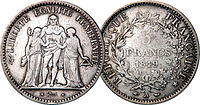 This opposition between liberals and socialists was mirrored in rival historical interpretations of the Revolution, liberals admiring 1789, and socialists 1793.[2] The July Revolution of 1830, establishing a constitutional monarchy headed by Louis-Philippe, substituted ordre et liberté (order and liberty) to the Napoleonic motto Liberté, Ordre public.[2] Despite this apparent disappearance of the triptych, the latter was still being thought in some underground circles, in Republican secret societies, masonic lodges such as the "Indivisible Trinity," far-left booklets or during the Canuts Revolt in Lyon.[2] In 1834, the lawyer of the Society of the Rights of Man (Société des droits de l'homme), Dupont, a liberal sitting in the far-left during the July Monarchy, associated the three terms together in the Revue Républicaine which he edited:
