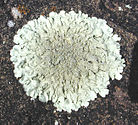 When a crustose lichen gets old, the center may start to crack up like old-dried paint, old-broken asphalt paving, or like the polygonal "islands" of cracked-up mud in a dried lakebed. This is called being rimose or areolate, and the "island" pieces separated by the cracks are called areolas.[26] The areolas appear separated, but are (or were) connected by an underlying "prothallus" or "hypothallus".[29] When a crustose lichen grows from a center and appears to radiate out, it is called crustose placodioid. When the edges of the areolas lift up from the substrate, it is called squamulose.[30]:159[28]