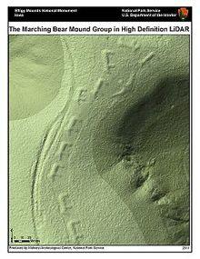 Lidar can also help to create high-resolution digital elevation models (DEMs) of archaeological sites that can reveal micro-topography that is otherwise hidden by vegetation. The intensity of the returned lidar signal can be used to detect features buried under flat vegetated surfaces such as fields, especially when mapping using the infrared spectrum. The presence of these features affects plant growth and thus the amount of infrared light reflected back.[58] For example, at Fort Beauséjour – Fort Cumberland National Historic Site, Canada, lidar discovered archaeological features related to the siege of the Fort in 1755. Features that could not be distinguished on the ground or through aerial photography were identified by overlaying hill shades of the DEM created with artificial illumination from various angles. Another example is work at Caracol by Arlen Chase and his wife Diane Zaino Chase.[59] In 2012, lidar was used to search for the legendary city of La Ciudad Blanca or "City of the Monkey God" in the La Mosquitia region of the Honduran jungle. During a seven-day mapping period, evidence was found of man-made structures.[60][61] In June 2013, the rediscovery of the city of Mahendraparvata was announced.[62] In southern New England, lidar was used to reveal stone walls, building foundations, abandoned roads, and other landscape features obscured in aerial photography by the region's dense forest canopy.[63][64][65] In Cambodia, lidar data were used by Damian Evans and Roland Fletcher to reveal anthropogenic changes to Angkor landscape [66]