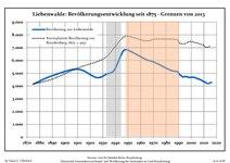 Recent Population Development and Projections (Population Development before Census 2011 (blue line); Recent Population Development according to the Census in Germany in 2011 (blue bordered line); Official projections for 2005-2030 (yellow line); for 2014-2030 (red line); for 2017-2030 (scarlet line)