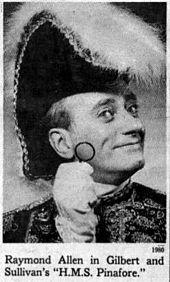 Raymond Allen, who had previously sung with the American Savoyards and made guest appearances at New York City Opera and the City Center Gilbert & Sullivan Company, was the leading comic actor for most of the company's performances.[4] Allen wrote an introduction to The Best of Gilbert & Sullivan: 42 Favorite Songs from the G&S Repertoire, a songbook published by Chappell Music Company in 1974. The book includes many photographs of LOOM productions and states that LOOM's year-round performing season was the longest of any company in the United States.[5]