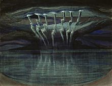 Behind us were frightening dark clouds, rent by lightning twisted and hurled, opening to reveal huge figures of flame.