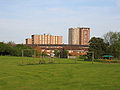 Lillington itself has two main areas - the new centre based around Crown Way which contains shops, dry cleaners and a post office. The area was predominantly built as a council house estate from 1950 onwards, and contains three tower blocks. The tallest of these, the fifteen-storey Eden Court, standing at the highest point of the estate, dominates the skyline and can be seen from south Leamington Spa, Radford Semele and for miles outside Leamington.[3] The second, and older area, contains the former village with the parish church of St. Mary Magdalene, the manor house, some Victorian terraced houses as well as estates of predominantly semi-detached houses built since 1930.