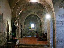 The main point of interest is the Romanesque abbey church of San Michele Arcangelo. While the foundations are from the 11th century, the current structure dates back to the 13th century. The church was extended and altered through several phases of construction, repair, and maintenance in the Middle Ages. Today the church has a naves and two aisles, each finishing in an apse. The church was renovated in 1947 but the beautiful frescoes (some probably by the school of Niccolò Alunno) are in various stages of deterioration, mostly due to the damage from the 1997 Umbria and Marche earthquake and the leaking in of rainwater since then. Of the medieval castle only a few ruins can be found.