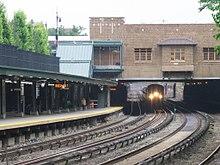 In the United Kingdom, some railway stations have tracks for which there are no platforms, allowing a larger number of fast trains to pass them without stopping. They may go down the middle of the station or down the side such as at Forest Hill, Raynes Park, Kentish Town and Totnes (the middle track at Totnes is used only in the summer by Great Western Railway services between London Paddington and Newquay).
