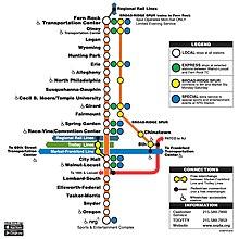 The United States also uniquely has subways that use this method. In New York City, they are numbered as separate lines, which are often part-express, part-local, while others are only express at certain times of day. In Philadelphia, they are considered the same line, but with a few different types of services. The Broad Street Line has the local, which makes all stops; the express, which has an early Southern terminus in the city center; the spur, which makes a few more stops than the express but less than the local, and then branches out to service two other stations), and the special, which is run only during sporting events, and runs as the express but then continues nonstop down to the southern terminus of the local, sharing tracks with the local.