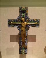 The Spitzer Cross is a crucifix, made c.1190 in Limoges, in France, by an artisan known as the "Master of the Royal Plantagenet Workshop". The work is made from copper, engraved and gilded, and inlaid with champlevé Limoges enamel, with tones of blues, greens, yellow, reds and whites, and depicts Christ on the cross. It may have been made as a processional cross for the Abbey of Grandmont: similar crosses are held in other collections, including the Metropolitan Museum of Art.