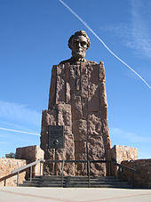 To bring attention to the highway, Fisher commissioned statues of Abraham Lincoln, titled The Great Emancipator, to be placed in key locations along the route of the highway. One of the statues was given to Joy in 1914.[13] Joy's statue was later presented to the Detroit Area Council of the Boy Scouts of America. That statue is currently on display at D-bar-A Scout Ranch in Metamora, Michigan.[14] There is another statue of Lincoln in the main entrance of Lincoln Park (Jersey City).