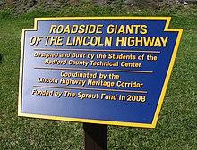 - ^ a b Lincoln Highway Heritage Corridor. "Roadside Giants of the Lincoln Highway". Lincoln Highway Heritage Corridor. Archived from the original on September 28, 2013. Retrieved September 25, 2013.