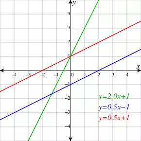 In two dimensions, the equation for non-vertical lines is often given in the slope-intercept form:
