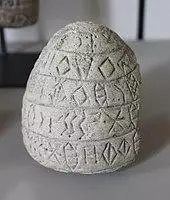 in Linear Elamite script.[15]Clay cone with Linear Elamite text. Louvre Museum Sb 17830. Reign of Puzur-Inshushinak.[16]