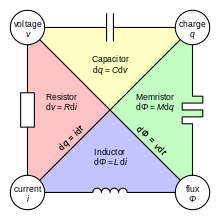 The fourth passive element, the memristor, was proposed by Leon Chua in a 1971 paper, but a physical component demonstrating memristance was not created until thirty-seven years later. It was reported on April 30, 2008, that a working memristor had been developed by a team at HP Labs led by scientist R. Stanley Williams.[2][3][4][5] With the advent of the memristor, each pairing of the four variables can now be related.