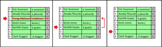Instead, when a cell i is emptied, it is necessary to search forward through the following cells of the table until finding either another empty cell or a key that can be moved to cell i (that is, a key whose hash value is equal to or earlier than i). When an empty cell is found, then emptying cell i is safe and the deletion process terminates. But, when the search finds a key that can be moved to cell i, it performs this move. This has the effect of speeding up later searches for the moved key, but it also empties out another cell, later in the same block of occupied cells. The search for a movable key continues for the new emptied cell, in the same way, until it terminates by reaching a cell that was already empty. In this process of moving keys to earlier cells, each key is examined only once. Therefore, the time to complete the whole process is proportional to the length of the block of occupied cells containing the deleted key, matching the running time of the other hash table operations.[3]