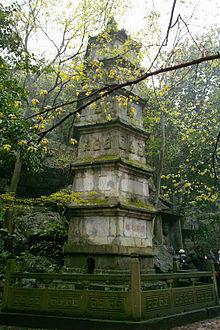 According to tradition, the monastery was founded in 328 AD during the Eastern Jin dynasty (265–420) by an Indian monk, named Huili in Chinese. From its inception, Lingyin was a famous monastery in the Jiangnan region.[1] At its peak under the Wuyue Kingdom (907–978), the temple boasted nine multi-story buildings, 18 pavilions, 72 halls, more than 1300 dormitory rooms, inhabited by more than 3000 monks. Many of the rich Buddhist carvings in the Feilai Feng grottos and surrounding mountains also date from this era.
