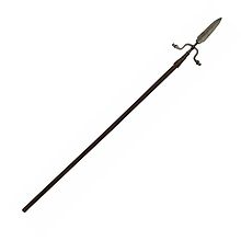 Linstocks had serpentine jaws to grip the slow match and a sharp point at the base to stick in the ground.[3] In emergencies gunners could use the spear blade as a weapon to defend the cannon.[4]