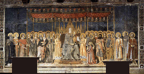 - Madonna Enthroned with Child, Angels and Saints (also known as San Gimignano Maestà, 1317) - Signed fresco, Palazzo del Popolo, San Gimignano
