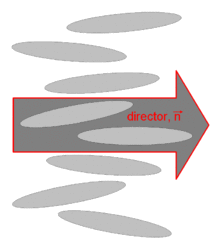 As we already saw above, the nematic liquid crystals are composed of rod-like molecules with the long axes of neighboring molecules aligned approximately to one another. To describe this anisotropic structure, a dimensionless unit vector n called the director, is introduced to represent the direction of preferred orientation of molecules in the neighborhood of any point. Because there is no physical polarity along the director axis, n and -n are fully equivalent.[18]