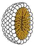 In a domestic setting, "soap" usually refers to what is technically called a toilet soap, used for household and personal cleaning. When used for cleaning, soap solubilizes particles and grime, which can then be separated from the article being cleaned. The insoluble oil/fat molecules become associated inside micelles, tiny spheres formed from soap molecules with polar hydrophilic (water-attracting) groups on the outside and encasing a lipophilic (fat-attracting) pocket, which shields the oil/fat molecules from the water making it soluble. Anything that is soluble will be washed away with the water.