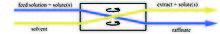 In a typical scenario, an industrial process will use an extraction step in which solutes are transferred from the aqueous phase to the organic phase; this is often followed by a scrubbing stage in which unwanted solutes are removed from the organic phase, then a stripping stage in which the wanted solutes are removed from the organic phase. The organic phase may then be treated to make it ready for use again.[19][20]