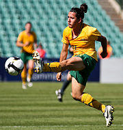 She scored four goals for Australia in the 2007 World Cup — one in a 1–1 draw against Norway, two in a 4–1 victory against Ghana, and one against Brazil in her team's 2–3 loss in the quarterfinals.[44] Each goal she scored at the World Cup was dedicated to her father, who died three months before the tournament began.[45]
