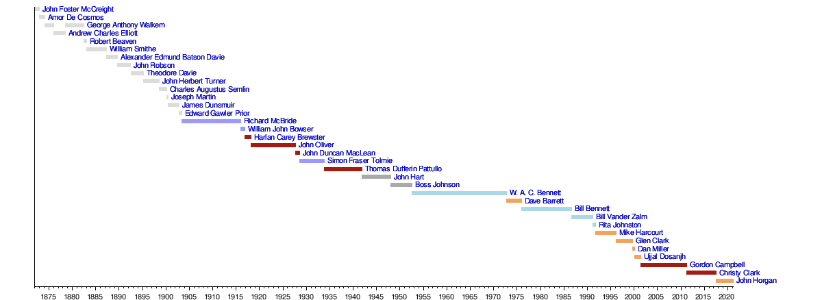 - "Premiers of British Columbia, 1871–today". Province of British Columbia. Archived from the original on June 4, 2013. Retrieved April 26, 2011.