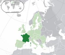France is a country whose territory consists of metropolitan France in western Europe, as well as several overseas regions and territories. A member of the Group of 7 (formerly G8) leading industrialised countries, as of 2014, it is ranked as the world's ninth-largest and the EU's second-largest economy by purchasing power parity.[1] With 31 of the 500 biggest companies in the world in 2015, France ranks fourth in the Fortune Global 500, ahead of Germany and the UK.[2] According to the World Trade Organization (WTO), in 2009 France was the world's sixth-largest exporter and the fourth-largest importer of manufactured goods.[3][4]