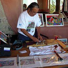 This is a list of visual artists who are Native Americans in the United States. The Indian Arts and Crafts Act of 1990 defines "Native American" as being enrolled in either federally recognized tribes or state recognized tribes or "an individual certified as an Indian artisan by an Indian Tribe."[1] This does not include non-Native American artists using Native American themes. Additions to the list need to reference a recognized, documented source and specifically name tribal affiliation according to federal and state lists. Indigenous American artists outside the United States can be found at List of indigenous artists of the Americas.