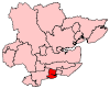 Key: bulk or all of areas marked † form part of present-day Greater London.