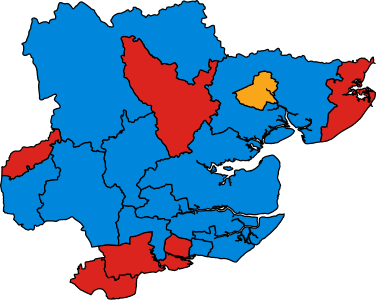 | Castle Point BC | 69,608 | 26,634 | 60.1% | Rebecca Harris † | Katie Curtis ‡ | |||