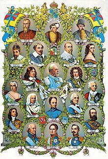 Charles XIV John (Karl XIV Johan) (born Jean Bernadotte) 5 February 1818 – 8 March 1844 | ![]() | Pau, France, 26 January 1763 son of Jean Henri Bernadotte and Jeanne de Saint-Vincent | Désirée Clary | Stockholm Palace, 8 March 1844, aged 81, buried in Riddarholmen Church |