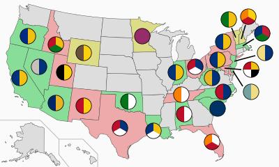 | State | Color 1 | Color 2 | Color 3 | Color 4 | Name(s) | Notes | |