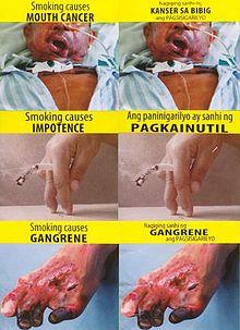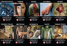 - See also: Tobacco packaging warning messages. Some examples on the right.