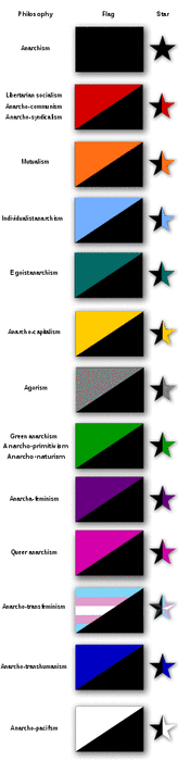 - Black anarchism – a loose term sometimes applied to group together a number of people of African descent who identify with anarchism opposing the existence of the state, the subjugation and domination of black people, and other groups, and favor a non-hierarchical organization of society. It argues for class struggle while stressing the importance of ending racial and national oppression, opposing white supremacy, patriarchy and capitalism, rejecting narrow or vulgar forms of "anarchism" that ignore issues of race and national oppression.[52]