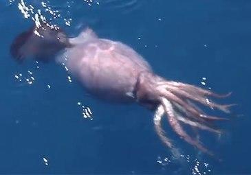 - ^ In descending order of confirmed maximum size: Architeuthis dux (giant squid) was first photographed alive in its natural habitat in 2004, and filmed therein in 2012, 2017, and 2019; Taningia danae (Dana octopus squid) was filmed in 2005 and again in 2012; Onykia robusta (robust clubhook squid) was filmed alive in shallow water in 1993 or earlier; Dosidicus gigas (Humboldt squid) is commonly encountered and filmed; and live habitat footage of Kondakovia longimana (giant warty squid) was released in 2017 ([NHK], 2017a, b, c; Komoda & Mizunuma, 2019). Among octopuses, Enteroctopus dofleini (giant Pacific octopus) is commonly encountered and filmed, and the deep-sea Haliphron atlanticus (seven-arm octopus) has been recorded from submersibles on a number of occasions.
