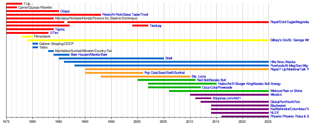 Coca-Cola/Powerade | Coca-Cola Bottlers Philippines, Inc. | Coca-Cola Bottlers Philippines, Inc. | 2002-2012 | 11 | 2 | GlobalPort/NorthPort* | ||