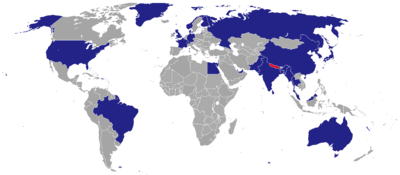 This is a list of diplomatic missions in Nepal. At present, the capital of Kathmandu hosts 30 embassies. Many other countries have non-resident embassies either resident in New Delhi or elsewhere.