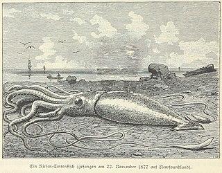 This list of giant squid specimens and sightings is a comprehensive timeline of recorded human encounters with members of the genus Architeuthis, popularly known as giant squid. It includes animals that were caught by fishermen, found washed ashore, recovered (in whole or in part) from sperm whales and other predatory species, as well as those reliably sighted at sea. The list also covers specimens incorrectly assigned to the genus Architeuthis in original descriptions or later publications.