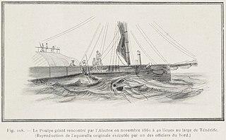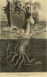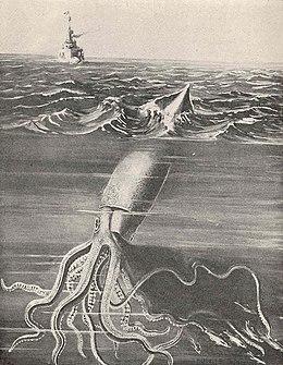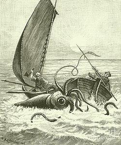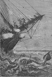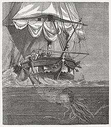 French corvette Alecton attempts to capture a giant squid in 1861 (#18). This incident almost certainly inspired the depiction of the giant squid in Jules Verne's 1870 novel Twenty Thousand Leagues Under the Sea (Ellis, 1998a:79).