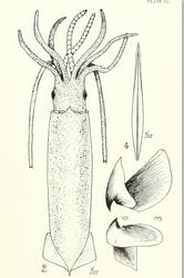• Iwai, E. (1956). Descriptions on unidentified species of dibranchiate cephalopods. I. An oegopsiden squid belonging to the genus Architeuthis. Scientific Reports of the Whales Research Institute, Tokyo, 11[Jun.]: 139–151, 1 text-figure, 5 plates.