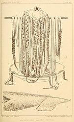 Guy Coburn Robson, from his description of Architeuthis clarkei, a species he erected in 1933 based on a carcass (#108) that washed ashore in Scarborough, England, earlier that year (Robson, 1933:681)