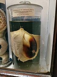 6. ^ a b These three-dimensional models were preceded by a full-scale wooden cutout with arms 35 ft (11 m) long that was prepared by Francis Trevelyan Buckland in the 1870s for his Museum of Economic Fish Culture in South Kensington, London. Its appearance was based on official papers and photographs Buckland received through the Colonial Office in December 1873 relating to "parts of a monster cuttle-fish caught off Newfoundland" (presumably the Logy Bay specimen; #30). Buckland's cutout has been described as the "first attempt to show the public what a giant squid really looked like" (Ellis, 1997b:31).