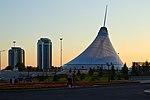 The Khan Shatyr Entertainment Center, a daytime computer render on a postage stamp.