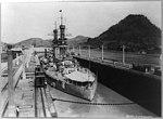 Hyperboloid mast towers were on the USS Arizona, in lock, Panama, 1921.