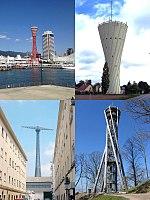 Kobe Port Tower | ![]() | 1963 | Kōbe | ![]() | Hyperboloid observation tower | 108 m (354 ft) | Nikken Sekkei Company | |