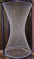 Tractricious | ![]() | 1988 | Fermilab, Batavia, Illinois | ![]() | Hyperboloid public art sculpture | Robert R. Wilson | The Tractricious sculpture in front of Fermilab's Illinois Accelerator Research Center (IARC), Illinois, designed by Robert R. Wilson[1][2] who derived the name Tractricious from tracktrix, a curve such that any tangent segment from the tangent point on the curve to the curve's asymptote have constant length, a concept first introduced by Claude Perrault in 1670. | |