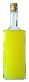 A bottle of homemade limoncello