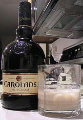 A bottle and glass of Carolans
